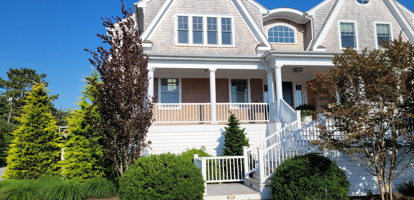 This property also had low points in the driveway and garage area. After excavating and adding a drainage leaching field, we added pervious pavers.We did grading and drainage, the driveway, new plantings and lighting.