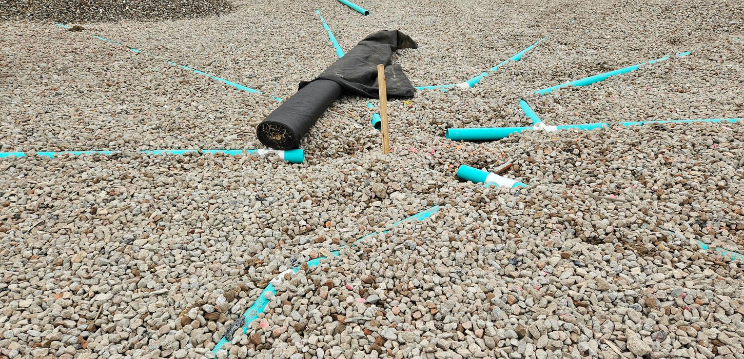 This property had some major drainage issues that continually flooded and so we were hired to sort out the drainage. First the property had to become an entire underground drainage leaching field in order for us to eventually add synthetic surface tennis court, putting green /basketball hoop and landscaping.